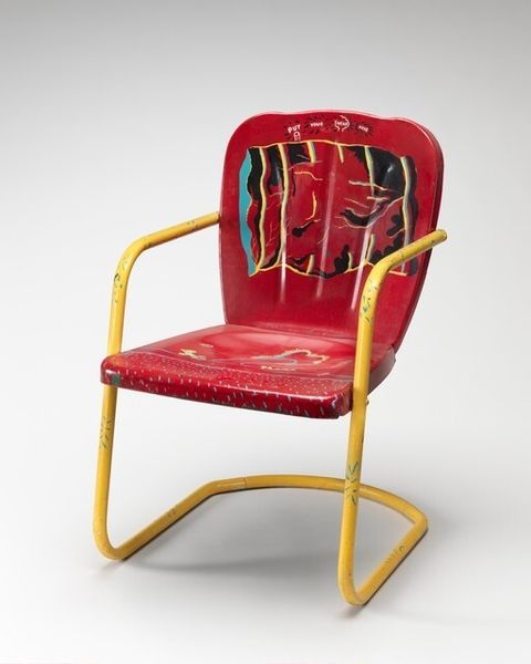 Curator: This rather fetching seat, ladies and gentlemen, is a passenger seat designed for the Fokker F.XII and F.XVIII aircraft, circa 1930 to 1933, produced by Studio Mutters. Note the combination of materials, metal framework and leather upholstery. Editor: Gosh, it's so streamlined. It looks ready to *fly* you directly into a jazz age daydream. It's less about sitting and more about experiencing swift, forward movement. Like a futuristic chariot. Curator: Indeed. The chair's design neatly encapsulates the key principles of modernism: form following function and clean, geometric lines. Look closely, and you’ll observe the subtle art deco influences too, that geometric sensibility married with machine-age aesthetics. Editor: I see how the design itself is a kind of map of aspirations, mapping out hope through the machine-made. Those tubular forms… they are comforting, almost like a gentle hug as one hurtles through the sky, trusting the technology of the age. It’s an altar to modern convenience! Curator: Very perceptive. Let’s not overlook how this seemingly simple piece resonates on multiple levels. Consider the symbolic associations of air travel during this period: speed, technological progress, global interconnectedness. The seat signifies more than just a place to sit; it embodies a set of social and cultural values. The use of metal suggests both durability, stability, and an unwavering march of progress. Editor: Absolutely! Even the color feels symbolic – that warm, almost reddish-brown leather has a real depth, like rich earth seen from above, all safe, controlled and above the world below. It all seems intended to induce both reassurance and awe. Curator: Indeed. A fascinating confluence of art, technology and social commentary, all conveniently packaged as airborne seating. It's a powerful example of how design objects can function as cultural icons. Editor: So it isn’t just furniture, then, but a time capsule carrying both the hopes and dreams – and even perhaps, unspoken anxieties – of a bold new era. It invites us to ask what shapes our faith in flight, both then and now.