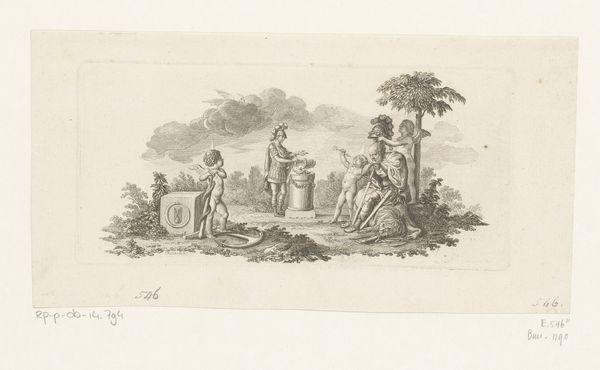 This print, "Allegory on the horrors of the French Revolution," was made by an anonymous artist. The French Revolution, which began in 1789, was a period of radical social and political upheaval in late 18th century France. This image reflects the emotional and political turmoil of the time, likely created by someone who experienced the revolution firsthand, or felt its aftershocks. The allegory uses symbols and imagery to convey complex ideas and emotions related to the French Revolution. The burning landscape and scattered bones evoke the violence and destruction of the revolution. The somber figure of a soldier contrasts with the decaying architectural and natural forms. The print presents a traditional representation of devastation, but also develops a counter-narrative where the revolution's ideals are questioned. It prompts us to reflect on the human cost of political upheaval and the tension between progress and destruction. It is a reminder that revolutions are not abstract political events, but deeply personal and emotional experiences that leave lasting scars on individuals and societies.