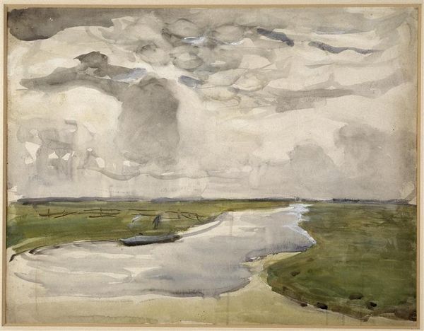 Frans Smissaert made this watercolor of a river landscape, complete with church tower, during a storm. Look at the way Smissaert allows the paint to pool and blend; it’s all about capturing a mood, a fleeting moment, the sense of the storm moving in and over this little town. The stormy atmosphere comes to life through the watery washes, which feel totally appropriate for a landscape with water and big skies. There’s a real looseness here, like the artist was trying to catch something that was always just beyond reach. But it's that little steeple peeking out that grounds the whole scene, like a tiny, hopeful exclamation point. It reminds me of some of Turner’s more atmospheric watercolors, where the details almost disappear into the light and weather. Ultimately, what I love about this piece is its embrace of ambiguity; it doesn’t tell you exactly what to see, but invites you to feel the weather, the place, the moment.