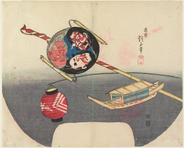 "Ship with Gifts" is a Japanese woodblock print by Hanzan Matsukawa, created sometime between 1820 and 1882. The print depicts a Takarabune, a treasure ship carrying gifts from the gods, a common motif in Japanese art, especially during the New Year symbolizing prosperity and good fortune. The image reflects the cultural traditions and beliefs of the Edo period. It was a time when the merchant class was rising in influence, and images of wealth and prosperity were very popular. We might consider this artwork as a window into the aspirations and values of the people. The ship, filled with symbolic items like coral and coins, presents themes of abundance and luck. Beyond the generalized prosperity, it's tempting to ask, who exactly did that prosperity serve? Who was invited to partake in the dreams of good fortune? The inscription on the print suggests a personalized wish or blessing, but the extent to which these blessings were equitably distributed remains an open question. The ship is more than just a symbol of wealth, it's a vessel carrying our hopes, dreams, and perhaps, a reflection of our society's complex relationship with fortune.