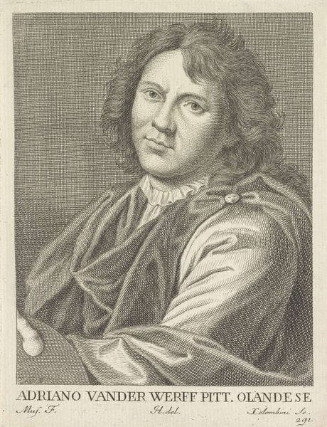 Curator: This engraving, created sometime between 1841 and 1874, depicts a "Portret van Jan Havicksz. Steen." Editor: He looks rather… self-assured. There's something about the angle and the slight smirk that suggests a confident individual, even arrogant perhaps. Curator: Willem Hendrik Stam created this image, capturing the likeness of Steen in the Dutch Golden Age tradition. Note how the lines give such volume, especially in his clothing. It feels like Baroque portraiture distilled into line art. Editor: The line work does convey an almost tactile sense of the fabrics and forms. I wonder what Stam sought to convey by re-presenting Jan Steen—another artist—so long after Steen's own lifetime. Was this an act of reverence? Or perhaps a comment on the artistic lineage, placing Steen within a historical context? Curator: Considering the proliferation of portraiture in the Dutch Golden Age, such an image could serve a mnemonic function, preserving a type, rather than offering likeness. A stand-in to embody artistry. Editor: The choice of black and white engraving lends it a timeless quality, further distancing it from any specific moment in history. Perhaps Stam wanted to speak to enduring characteristics he perceived as important across time. The figure's social status feels pronounced too, reinforcing notions of access and power within artmaking across history. Curator: The detail in the face draws the eye; that slight upturn of the mouth really personalizes an otherwise somewhat formulaic style of portraiture. What emotions, I wonder, are embedded within the artistic persona that Steen has come to embody? Editor: For me, there is an underlying sense of exclusion in images of wealthy, white men in art. What historical narratives are amplified and centered versus those suppressed, erased? Seeing this image today invites reflection on visibility and voice—and whose stories we tell, or don’t. Curator: It certainly stimulates conversation around not only Steen's identity, but Stam's purposes, too. Visual language creates complex conversations, shifting as time marches forward. Editor: Absolutely, and engaging with the imagery of the past allows us to challenge the norms of the present.