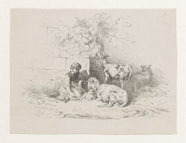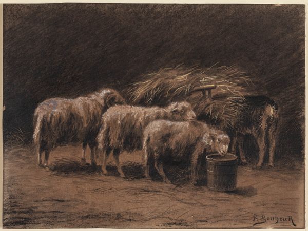 Charles Jacque created "Sheep in a Manger" using pen and brown ink with white gouache highlights on paper in the 19th century. Jacque, a French painter and printmaker, belonged to a generation of artists who turned to rural life, finding in it an authenticity that countered the rapidly industrializing world. This drawing offers a glimpse into the everyday existence of farm animals, imbued with a sense of quiet dignity. Consider the labor typically associated with rural life, often performed by those on the margins of society. Here, the representation of sheep in their humble surroundings invites reflection on the value of simplicity. The muted tones and soft light evoke a sense of intimacy, drawing us into the sheep’s shelter. Does Jacque’s attention to these animals serve to highlight the beauty of the mundane, or does it romanticize a difficult existence? Ultimately, "Sheep in a Manger" prompts us to consider our relationship with the natural world, and to appreciate the quiet beauty found in everyday life.