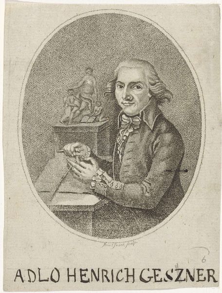 Louis Bernard Coclers etched this portrait of the artist Johannes Janson, capturing him in the act of creation. The hand, wielding the tool of art, is the dominant symbol here, tracing its lineage back to the very origins of human expression. Consider the hand not merely as an anatomical feature but as a conduit of thought, emotion, and will. Throughout history, the hand has signified power, skill, and benediction. Think of the raised hands in ancient Egyptian murals, invoking divine favor, or the expressive hands of Renaissance saints, conveying spiritual ecstasy. Here, the artist's hand echoes those gestures, but with a crucial shift. It embodies the creative act, the translation of inner vision into tangible form. Coclers captures Janson's intense focus, his hand steady, channeling the life force of observation onto the page. This image is charged with the psychological intensity of artistic creation, a dance between the conscious and the subconscious, forever captured in ink.