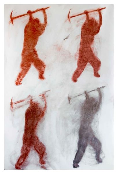 Editor: Here we have "Comedy of Mistakes," an acrylic on canvas work created in 2017 by Alexander Roitburd. The figures seem awkwardly arranged, and I'm immediately struck by the use of such a limited color palette. How do you interpret this work through its formal elements? Curator: Indeed, the limited palette of raw umber and variations of pale skin tones creates a sense of visual tension. Note how the composition hinges on contrasting lines, vertical versus horizontal, particularly the implied lines connecting the figures. What does this interplay of contrasting axes communicate to you? Editor: It feels destabilizing. The figures seem disconnected, almost fighting against each other visually. The negative space also forms an unusual void. Is there significance in this hollowness? Curator: Precisely. The hole is not merely a void, it actively disrupts the figurative coherence, demanding scrutiny. Let us consider the layering. Do you observe any recurring patterns of superimposition? How do these interplays generate meaning within the painting’s structure? Editor: I notice the repeated use of the human figure, distorted and repeated. The artist uses color and the body as its medium in a raw kind of representation. It all creates a somewhat disjointed narrative through the human forms. Curator: A fragmented narrative, yes. Roitburd orchestrates a complex arrangement where the very act of seeing becomes part of the narrative. Through semiotic deconstruction, Roitburd challenges our assumptions and conventions of visual form by presenting us with human elements and disjointed structures. How does this challenge what we see when we reflect on a “comedy of errors?” Editor: This really made me rethink how elements such as the lack of vibrant colors or the disrupted figures and forms help to build narrative. The structures make one want to challenge meaning. Curator: An astute observation. A study in the structural elements reveals a disruption that invites deeper scrutiny. Thank you.
