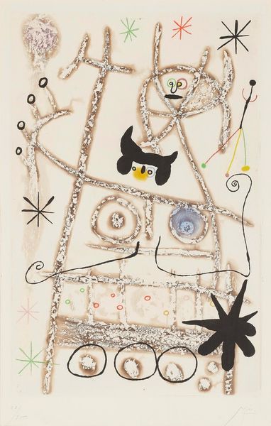 Curator: Colin Lanceley's "An Adventure with some Windmills" presents a whimsical, almost dreamlike scenario rendered in ink. What strikes you first about it? Editor: The chaotic energy! There's a primal, unsettling feeling, like a child's nightmare scrawled onto paper. The figures seem both playful and menacing. Curator: Lanceley often drew from mythology and personal experience, and you see that reflected here. The windmill, of course, a clear reference to Don Quixote's delusions, but Lanceley adds a layer of his own anxieties about the rapidly changing world. Editor: The dog-like figure howling at what? And that bizarre creature at the top... It's as if Lanceley is tapping into collective anxieties about societal norms. The iconography is so evocative! Curator: Indeed. The layering of symbols allows for a complex interpretation. It's not just about Quixote's folly but a broader commentary on societal progress versus destructive tendencies. Editor: I appreciate how Lanceley uses these familiar symbols to express something deeply personal, making a powerful statement about a world in flux. Curator: Agreed. It's a reminder that even in the face of absurdity, art can provoke profound self-reflection.