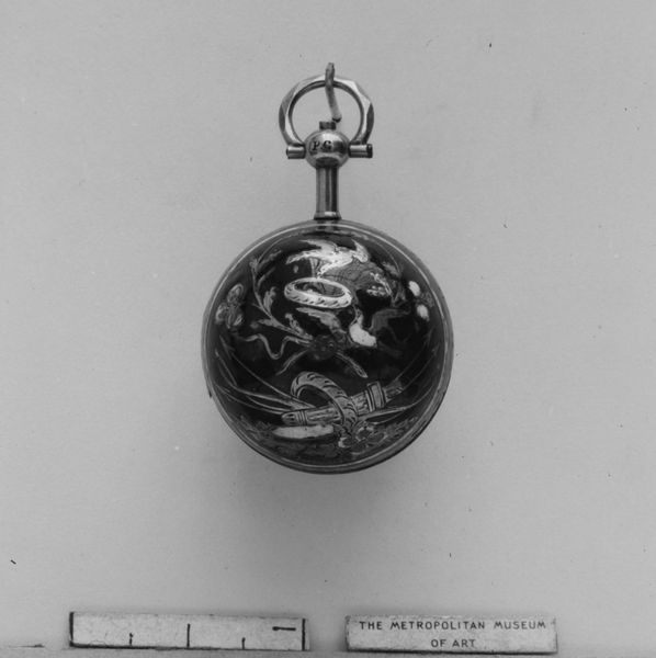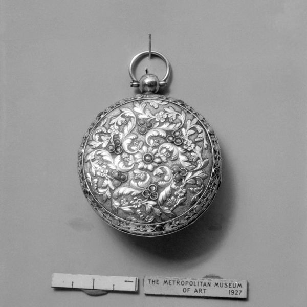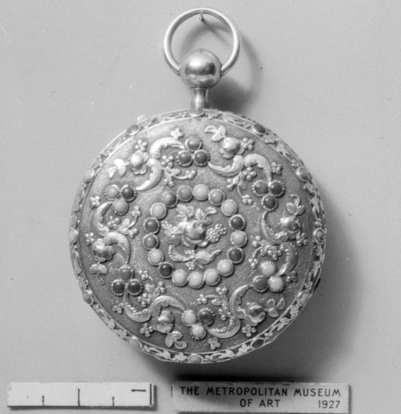 This delicate watch was created by C. Moricand sometime between 1775 and 1875. Consider the historical context in which the watch was made. The late 18th and early 19th centuries witnessed significant shifts in social and economic structures, driven by industrialization and urbanization. Timekeeping became increasingly important, and objects like this one became potent status symbols. The watch's intricate floral design and precious materials speak to the culture of luxury and refinement that defined aristocratic life in Europe. Its small size also suggests the personal and intimate relationship that individuals had with time during this period. To further understand the watch's place in history, we could research Moricand's career and his relationship to the watchmaking industry. We might also investigate the cultural meanings associated with specific materials used in its construction. Ultimately, this object helps us to reflect on the changing nature of time, labor, and status in the modern era.