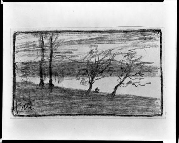 Editor: We're looking at "Trees Bordering a Farm Meadow" from a sketchbook by Thomas Hewes Hinckley, probably made between 1857 and 1867. It’s a pencil drawing, and there’s something so gentle and quiet about the delicate lines. It almost feels like a memory fading into the paper. How do you interpret this work? Curator: It’s a deceptively simple drawing. On the one hand, it is of a place, and landscape as a genre becomes quite important during this period. However, let's also consider what landscape represents at this time, particularly in the United States. What kind of societal changes might have made rural landscapes so appealing to artists and their patrons? Editor: Well, you had the Industrial Revolution ramping up, urbanization, so maybe this represents a longing for a simpler, more natural past, away from the noise and grime of cities? Curator: Precisely. The rise of industrial capitalism drastically altered the American landscape and social structure. Picturesque, 'unspoiled' scenes like this one, while seemingly apolitical, acted as a visual balm, offering respite from the anxieties of rapid change. Hinckley's choice to present this as a study in a sketchbook adds another layer, almost inviting us into his private, nostalgic world. Who exactly gets the privilege of accessing or owning this nostalgia, becomes something we can analyze from a socio-economic point of view. What do you think? Editor: That's really fascinating! I was focused on the beauty, but seeing it as a response to industrialization and maybe even a statement about class and access gives it so much more depth. Curator: Exactly. It pushes us to think about whose stories and experiences are deemed worthy of preservation and aestheticization, and the power dynamics inherent in those choices. I also wonder, who has access to viewing art, and that alone suggests much about a socio-economic position. Editor: This has completely changed how I see landscape art. I will definetly be considering context next time!