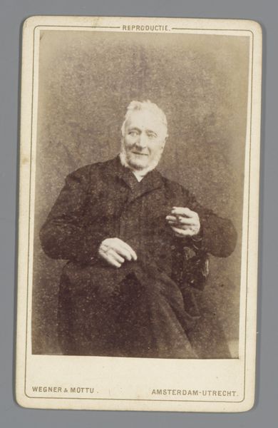 Editor: Here we have a gelatin-silver print dating from between 1893 and 1913, entitled "Portrait of an Unknown Man with a Mustache," by Weijert Jan van Zanen. I'm struck by the tonal range in this print. What do you notice? Curator: Observe how the artist's use of tonal gradation creates a gentle, almost ethereal, effect. The highlights around the face and collar are quite striking against the darker suit, which serves to frame the face. How does the composition guide your eye? Editor: It feels very classical. The man is centered and looks straight out. How does the formal pose contribute to the work’s overall impact? Curator: The symmetry certainly lends the piece a sense of stability and perhaps even authority, don't you think? Note the subtle asymmetry of the light itself, which gives depth to the subject’s face. The photographer expertly used the medium to convey form and texture. Editor: I hadn’t considered the effect of the light so closely. So, for you, the interest lies in the contrast and how the different shades compose a formal, symmetrical portrait. Curator: Precisely! The aesthetic lies in its manipulation of light and shadow to sculpt the figure, thereby transcending mere representation. Editor: I appreciate seeing how a relatively simple portrait can hold so much depth. Curator: Indeed. It is a study in form.