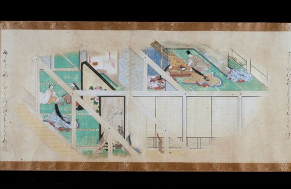 Tosa Mitsuyoshi crafted this image on paper at an unknown date, presenting a tableau rich with symbolism. The pine trees, ubiquitous in East Asian art, signify longevity and steadfastness, deeply rooted in the cultural psyche as emblems of resilience. Observe how these pines echo through time, recalling similar motifs in classical Chinese landscape paintings, where they symbolize the virtuous scholar enduring hardship. But here, in Mitsuyoshi’s composition, they acquire a uniquely Japanese inflection. The fragmented, almost dreamlike arrangement of space evokes a sense of fleeting moments captured and preserved. It's as if the artist delves into the collective unconscious, drawing forth archetypal images of nature and human presence. This resonates on a primal level, stirring within us a sense of continuity and cultural memory. Such symbols don't merely decorate; they embody the emotional and psychological undercurrents that bind us to the past, resurfacing in art across centuries, each time reshaped by the ever-shifting currents of history.