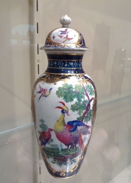 Editor: Here we have a porcelain vase, likely from the 19th century, currently residing at the Minneapolis Institute of Art. It's decorated with gouache paintings, predominantly featuring birds. I find the combination of the delicate porcelain and the vivid colors quite striking. What do you see in this piece? Curator: This vase is fascinating. Beyond its surface aesthetics, it whispers stories of global trade and cultural appropriation. Nineteenth-century porcelain, especially pieces like this adorned with bird motifs, speaks volumes about the Western fascination with and often exploitative relationship with the East. Editor: Exploitative? How so? Curator: Consider the raw materials – were they ethically sourced? The bird imagery, potentially referencing exotic species, might have been incorporated without genuine understanding, functioning more as a status symbol than a true appreciation of nature. Also, who was this vase for? The wealthy elite, reinforcing class divisions? Editor: That’s a perspective I hadn’t considered. I was so focused on the pretty bird. Curator: It’s easy to be captivated by beauty. But art often serves as a reflection, or even a subtle justification, of the social and political norms of its time. By examining it critically, we can uncover uncomfortable truths about power, privilege, and representation. Does considering this historical context change how you see the vase? Editor: Absolutely. It makes me question my own initial, perhaps naive, interpretation. It's more than just a pretty object; it's a historical artifact loaded with meaning. Curator: Exactly! It reminds us to look deeper and continuously challenge the narratives presented to us through art.