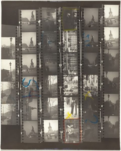Robert Frank made this photographic collage, Le Canal du Nord—Paris 8B, using gelatin silver print and blue pencil. It’s like a visual diary, raw and unfiltered. The contact sheets show Paris through Frank's eyes, frame by frame, a sequence of moments. I’m drawn to the physicality of it. The way the light captures the grain of the film. The number eight, scrawled in the middle, it’s like a note to himself. The blue pencil lines cutting through the images, they aren’t just marks, they’re decisions. There is one frame, towards the top right, with the blue pencil highlighting the edges. It's like he's saying, "look here." It reminds me a bit of the work of someone like Gerhard Richter and his use of photography in painting. With this piece we see Frank embracing the inherent ambiguity of art and inviting us to find our own narrative within the sequence. It's a conversation, not a lecture.