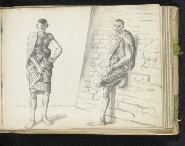 Editor: This is "Six women labourers with their baskets," a pencil drawing from 1662 by Esaias Boursse. It's rendered in delicate pencil strokes on what appears to be aged paper, perhaps from the artist’s personal sketchbook. There's a quiet dignity to the women, even in what looks like a quick study. What stands out to you? Curator: This drawing offers a potent glimpse into the material conditions of labor during the Dutch Golden Age. Note how the emphasis on the baskets, tools of their trade, becomes integral to their representation. The work elevates the everyday labor typically unseen or unacknowledged in formal portraiture. How does Boursse's choice of medium - the humble pencil - contribute to this portrayal? Editor: It seems almost… intentional? Like he wanted to avoid the lavishness often associated with depictions of wealthy merchants or nobility? Curator: Precisely. The light pencil work avoids idealization, grounding these women in the reality of their labor. It invites us to consider who gets represented and by what means. Who holds the power to depict and whose labor makes that depiction possible? Boursse, while perhaps not overtly critiquing the social structure, directs our attention to the often-unseen engines of Dutch prosperity. Notice the tonal variations in the paper itself; it's almost like another layer of texture added to the scene. Editor: So, it’s not just a drawing of laborers, but a commentary on the social and economic structures that depend on their work? I see it now. The basket becomes almost like a symbol of their contribution. Curator: Exactly. And thinking about Boursse’s own social position as the artist creating the work, we might also reflect on the power dynamics involved in this act of representation itself. It’s all tied to materials and means. Editor: This makes me consider my own consumption and labour. Thanks, I'll never see an old sketch the same way again. Curator: Precisely! It’s these small, seemingly simple objects that carry so much weight.