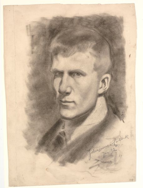 Editor: We're looking at Max Liebermann's "Portrait Arno Holz," made in 1923 using charcoal and pencil. It strikes me as a very direct and somewhat austere depiction. What stands out to you about this particular piece? Curator: Notice the intense use of charcoal and pencil – seemingly humble materials – to capture the essence of Arno Holz. Liebermann, rooted in modernism and influenced by German Expressionism, doesn't shy away from showcasing the raw process. We see the artist’s hand, the labor involved in creating the image. Do you think the medium impacts how we perceive Holz? Editor: Definitely! A painted portrait might feel more formal, more idealized. The pencil and charcoal feel more immediate, like a quick study, revealing the subject's personality through the artist's rapid marks. Curator: Exactly. It pushes us to consider the socio-economic aspect of art production, too. Liebermann chose accessible, readily available materials. How might that choice democratize the process, blurring lines between "high art" and the everyday practice of drawing? What does it say about the role and value of labor in art? Editor: I see what you mean. It’s almost a rejection of precious materials in favor of something more… honest? The materials draw focus onto Liebermann’s skill in portraying expression through such simple media. Curator: Indeed. By emphasizing the means of production, Liebermann encourages us to analyze the social context in which the artwork was made and received, which challenges our established concepts around the definition of portraiture in 1920s Germany. Editor: I never considered how much the materials themselves can contribute to the social meaning of a portrait. This deeper consideration is really invaluable, thank you. Curator: My pleasure, seeing art through the lens of materiality and production unveils often overlooked facets of artistic creation and social history.