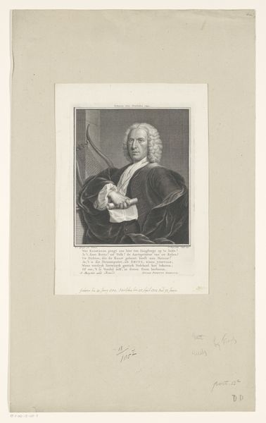 This is a portrait of Georg Gottlob Richter, made by Georg Daniel Heumann using engraving techniques. Engraving is a printmaking process, where the artist carves a design into a metal plate, usually copper, using a tool called a burin. Ink is then applied to the plate and the surface wiped clean, leaving ink only in the engraved lines. The plate is then pressed onto paper, transferring the image. This method demands a high level of skill and precision. The clean, sharp lines you see here are characteristic of this process, enabling the fine details of Richter's face and clothing to be captured with remarkable accuracy. The printmaking process allowed for multiple impressions to be made, facilitating the wider distribution of Richter's likeness. This speaks to the social context of the time, where portraiture was not just for the elite, but increasingly accessible to a broader public. The labor-intensive process of engraving contrasts with the potential for mass production. Thinking about materials and making helps us understand how the culture of craft and the rise of print media are intertwined.