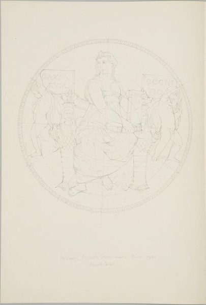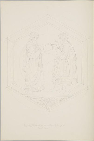 Editor: This drawing by Kenneth John Conant captures a detail of Luca della Robbia's sculpture of Plato and Aristotle. I find the linear quality very striking. What symbolic meanings do you see embedded in this image? Curator: The act of copying itself is significant here. Conant’s drawing preserves and transmits the cultural weight of Renaissance ideals, echoing classical philosophy. Notice how Plato's gesture upward contrasts with Aristotle's grounded stance. Editor: So, the drawing becomes another layer of interpretation, furthering the dialogue between different eras and ideas? Curator: Precisely. The image encapsulates a continuous thread of intellectual pursuit across time. A beautiful echo, wouldn't you say? Editor: Absolutely. It’s amazing how a simple sketch can hold so much history and meaning.