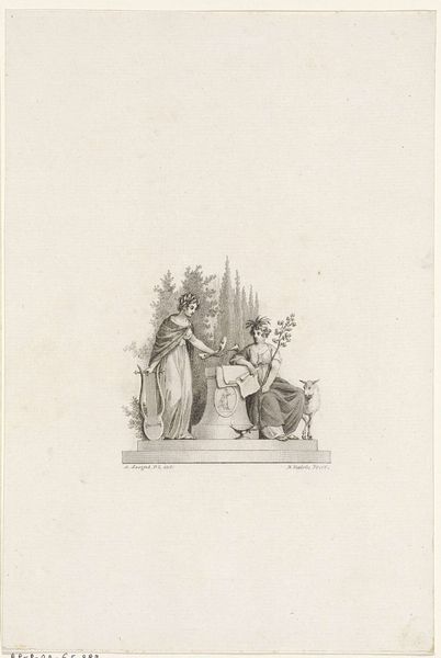 Curator: This engraving, created sometime between 1652 and 1666 by Gérard Edelinck, depicts the Mystical Marriage of Saint Catherine. Editor: It strikes me as surprisingly tender for a scene of such theological weight. The softness of the lines, the gentle curve of Catherine’s head... it’s almost melancholic. Curator: Considering it’s an engraving, look closer at the incredible detail achieved with such a rigid medium. Edelinck manipulated the copper plate to suggest varied textures: the flowing drapery of Catherine’s robe, the downy hair of the infant Christ. The labor involved must have been considerable. How do the conventions of baroque allegory and printmaking processes shape the representation here? Editor: Absolutely. The imagery overflows with symbolism. The wheel, of course, for Catherine’s martyrdom, transformed here into something the Christ Child playfully engages with. And the crown! She’s often shown with one, a visual marker of her divine union with Christ. The overall composition creates this powerful sense of devotional intimacy between Catherine and Christ. Curator: Note how the work complicates notions of value, blurring the boundaries between art, craft, and religious iconography. How might the consumption of such an image impacted ideas around class, labor, and religion at the time of its creation? Editor: It's intriguing how the print manages to convey both power and vulnerability through symbolic codes so ingrained in the cultural imagination. The radiance around the figures is not merely decorative; it evokes spiritual authority. Even the background contributes – a soft pastoral landscape alluding to the promise of salvation, an idealized representation of the spiritual path. Curator: So, ultimately we have this remarkable instance of devotional allegory rendered through a rigorous mechanical process. Editor: Yes, a fascinating reminder that images and symbols, even replicated and consumed en masse, still retain the capacity to resonate deeply with personal meaning.