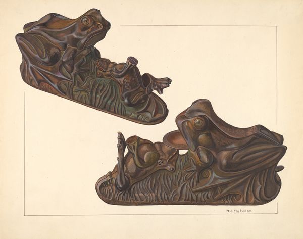 Editor: Here we have "Side Saddle," a piece from around 1941 by Sydney Roberts. It looks like it's crafted using watercolors and maybe some drawing techniques. I’m struck by the quiet intimacy of it—it’s not a grand, sweeping landscape, but this very particular, ornate object. What details grab your attention in this work? Curator: You know, it's funny, isn't it? How a simple object can carry such weight. For me, it’s the meticulous detail. Roberts seems utterly absorbed in rendering every stitch and floral flourish. It's as if the saddle isn’t just an object but a character, a silent partner in countless journeys. Do you feel that stillness as well, almost a haunting quality? Editor: Absolutely! I hadn’t thought of it as a character before, but that reframes my whole understanding of the piece. Is that stillness tied to the fact it’s from the 1940s, do you think? Curator: Perhaps. It was a time of great upheaval and uncertainty, yet life went on. I imagine this saddle being used in everyday life. Maybe Roberts found solace in documenting the textures and colors of this ordinary object amid extraordinary times. It's an act of quiet defiance, wouldn't you say? Paying attention to what's present and lasting. Editor: That gives the saddle so much more dimension. Now I'm seeing not just the object itself but a symbol of resilience, even stubbornness! Thank you—this changed the way I view still life entirely. Curator: My pleasure! And you've reminded me that art always holds a conversation waiting to happen; sometimes, you need a fresh set of eyes to jumpstart it.
