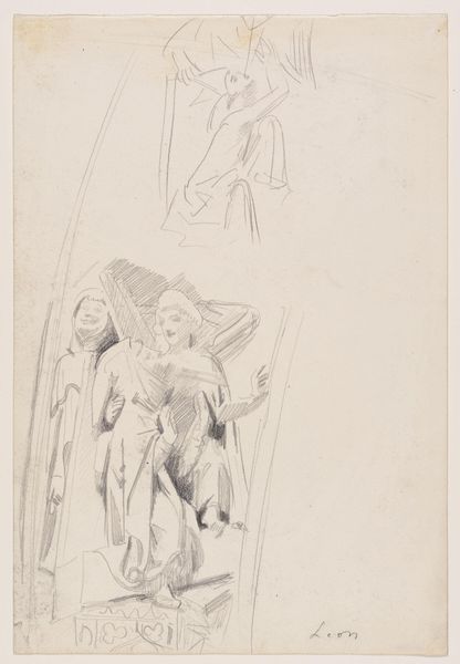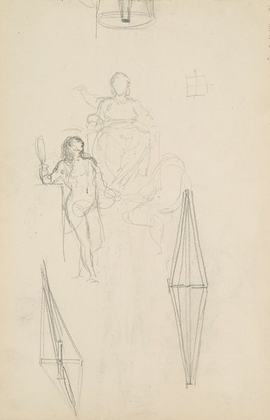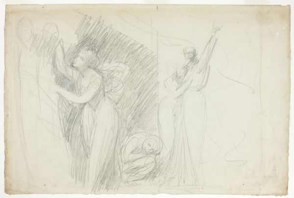 Here we see "Two Sketches of a Woman and a Warrior" rendered in delicate strokes of graphite on paper by Dionys van Nijmegen. The composition divides the figures into two distinct studies, each a testament to the artist's anatomical observation. Note how Van Nijmegen uses line to evoke form and volume in the classical figures. These lines dance across the surface, defining drapery and musculature, creating a sense of movement and energy. Despite their unfinished nature, these sketches present a study in contrasts – the soft curves of the woman versus the angular stance of the warrior. This contrast is not merely aesthetic but speaks to deeper, semiotic structures relating to gender and power. The deliberate asymmetry and the sketched quality invites us to consider how the unfinished can be as compelling as the complete. It’s a challenge to traditional notions of artistic perfection and a suggestion that the process of creation is as significant as the final product.