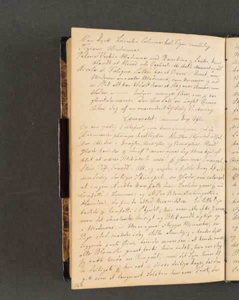 Curator: Welcome. We are standing before a page from Johan Thomas Lundbye's "Rejsedagbog," or Travel Journal, created in 1846. It's a drawing on paper, housed at the SMK, the National Gallery of Denmark. Editor: My first impression is… intimate. A whispered confidence captured in ink. It's just a fragment, yet it feels heavy with unseen thoughts. Curator: Precisely. Lundbye, a key figure in Danish Romanticism, used these journals not just for travelogues, but also as personal reflections, philosophical musings, and raw emotional expressions. Notice the density of the handwriting. Editor: Yes, a cascade of tight script. The letters themselves feel like tiny monuments crammed onto the page. The controlled hand perhaps suggesting restraint. But the sheer volume! It's overwhelming. Curator: The romantic spirit, wouldn’t you say? He wasn't merely recording facts; he was channeling feeling, processing experience through the act of writing and sketching. Look closer, and you may recognise the landmarks like the columns which reference Pompeii. Editor: I see how classical forms of reference seep in even among daily entries. The act of the journey itself transforms. Travel as self discovery, as something that has an impact on identity. Even simple script becomes an attempt to embody grand human themes, history folding into personal experience... Curator: Indeed, these journals offer glimpses into Lundbye’s inner world as it was being shaped by his encounters with the external world. What remains today is a series of glimpses into another world, or another consciousness – Editor: A very self aware form of journaling which then reflects to us, in turn. We see his perspective as his inner monologue reveals itself to us through art. It’s quite the legacy!