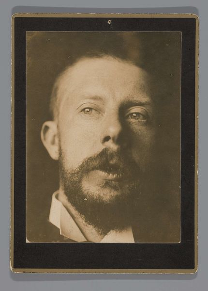 This is Willem Witsen’s portrait of G.W. Dijsselhof, a photo printed on cardboard. Looking at this portrait, one can’t help but wonder about the quiet, intense gaze of Dijsselhof. Witsen, born in a time of great social change, captured more than just a likeness; he captured a sense of identity. Consider the historical context: the late 19th century, when ideas about art and its role in society were being radically reconsidered. The sitter, Dijsselhof, was himself an artist and designer associated with the Dutch Arts and Crafts movement. Witsen and Dijsselhof were part of a circle of artists who challenged the status quo. How were they trying to redefine beauty and craftsmanship? What does this portrait tell us about their ambitions and their personal relationship? It serves as a mirror reflecting the complexities of identity and the evolving cultural landscape of the time.