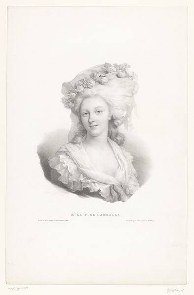 Nicolas Maurin created this print of Marie-Thérèse-Louise de Savoie-Carignan, Princesse de Lamballe in the early 19th century, a period marked by the aftershocks of the French Revolution and the rise of print culture. This print immortalizes a woman whose fate was deeply entwined with the French monarchy and the revolutionary fervor that consumed it. As a close confidante of Queen Marie Antoinette, the Princesse de Lamballe became a symbol of aristocratic loyalty during a time of immense social upheaval. Her brutal execution by a Parisian mob during the September Massacres of 1792 shocked Europe. Maurin's portrait, created after her death, presents the princess as a figure of grace and serenity, with a nod to the opulence and grandeur of the French court. The softness of the printmaking medium lends an air of vulnerability to her image, perhaps hinting at the tragic end that awaited her. It serves as a poignant reminder of the human cost of revolution, inviting reflection on the intersections of power, gender, and violence during a pivotal moment in European history.