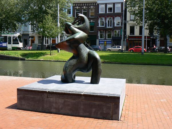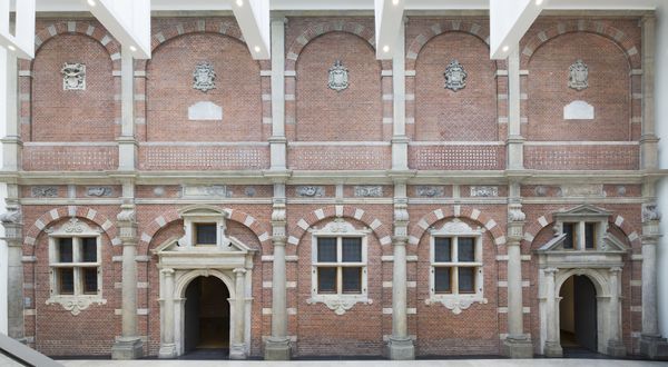 These pediments appeared on the two sides of one of Amsterdam’s city gates: Regulierspoort. The pediment on the city-side showed a cog, a common cargo ship in the Middles Ages, used to transport large amounts of produce. As a commercial city, Amsterdam sported a cog in its emblem. The gate, which stood at today’s Rembrandtplein, became obsolete in 1669 and was used as a butter weigh house until it was demolished in 1874.