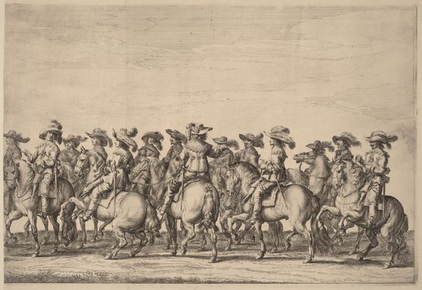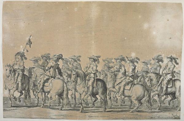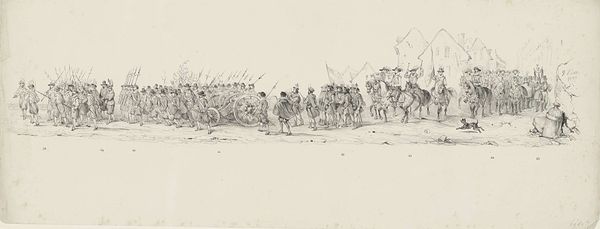 Victor Adam created this print in 1836, commemorating the bicentennial of Utrecht University. This event occurred within the context of the Netherlands, a constitutional monarchy seeking to establish a strong national identity following the Napoleonic era. Note how the artist depicts the procession, a carefully staged performance meant to project power and tradition. The riders on horseback, likely members of the academic and political elite, are presented in a way that emphasizes their authority and connection to the university's history. But who is missing from this picture? The working class, women, and people of color would have been excluded from such displays of power, their stories absent from the dominant narrative being constructed. Consider how the print might have been received by different groups within Dutch society. For the elite, it likely served as a celebration of their status and the university's importance. For others, it may have been a reminder of their exclusion from the corridors of power.
