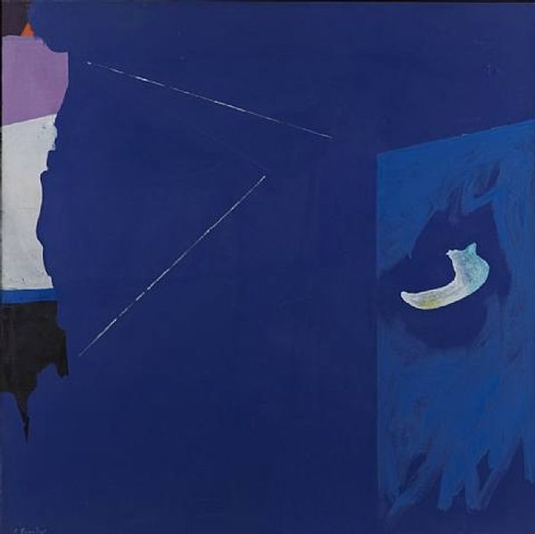 Tomas Maldonado's painting, "Desde un sector," is a geometric abstraction defined by its stark contrasts and precise forms. We see a canvas divided into distinct color fields: a creamy white, a muted green, and a bold blue. These large, solid areas are disrupted by sharp lines and small geometric shapes concentrated in the center, creating a focal point where diagonals intersect and colors interlock. Maldonado masterfully employs the language of geometric abstraction, a style that emerged in the early 20th century seeking to express the underlying structure of reality through non-representational forms. The painting’s title hints at a perspective, "From a Sector," suggesting that what we see is a fragment of a larger, unseen order. This approach challenges the traditional notions of space and representation, proposing a new visual language rooted in rationalism and mathematical precision. Through this formal interplay of line, color, and shape, Maldonado invites us to contemplate the essential elements of visual expression and their potential to convey complex ideas.