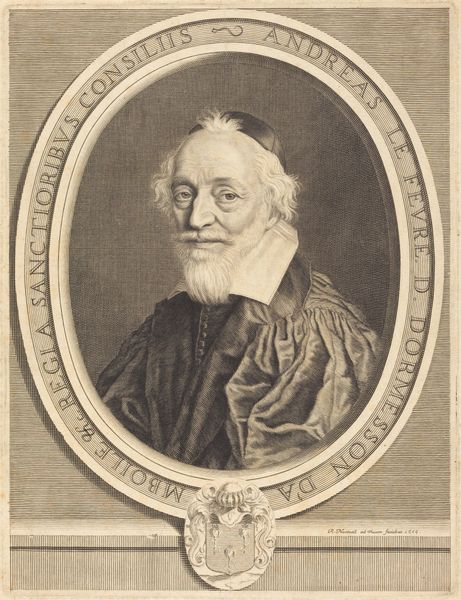 Robert Nanteuil created this print of Mathieu Molé using engraving techniques. Nanteuil was one of the most celebrated printmakers of his day, known for his refined approach. This image would have been made by incising lines directly into a copper plate with a tool called a burin. The depth and spacing of these lines determine the tonality and texture of the final print. Look closely, and you can see the extraordinary level of detail he achieved, particularly in the rendering of Molé’s face and beard. Prints like this were crucial to the circulation of images and ideas in the 17th century. They democratized access to portraiture, previously reserved for the wealthy who could commission paintings. While Nanteuil's artistry is evident, we should also remember the labor involved – the skilled work of cutting the plate, and the repetitive task of printing impressions. This piece sits at the intersection of art, craft, and the burgeoning print industry.