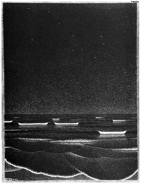 Frank Wright made this print, Paris Light, sometime in his lifetime. Look at the peachy light as it dissolves upwards into the hazy purple of the sky. It’s so gentle. You can see how the marks of the printmaking process are not entirely uniform and mechanical. It's a reminder of the hand that guided its making, a really human touch. I love how the texture in the sky suggests depth. The surface isn’t flat, which makes it feel more like a memory of a sunset than just a picture of one. Those rooftops at the bottom, rendered in such detail, anchor the dreamy expanse above. The whole thing feels so balanced, like a quiet moment captured in ink. It reminds me a little of how Bonnard uses color to evoke a feeling. Anyway, it’s just nice, isn't it? It’s nice to look at.