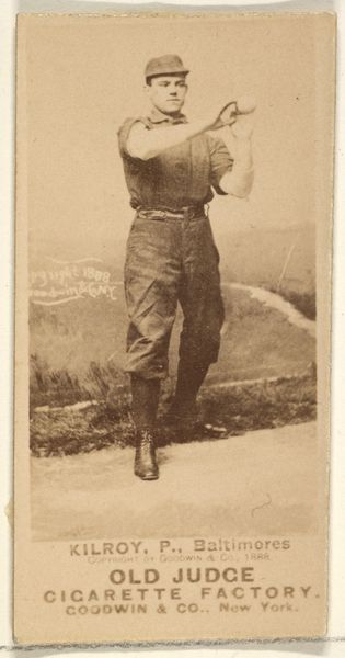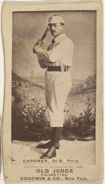 Goodwin & Company produced this baseball card of James H. "Jim" Manning in 1888, as part of a series for Old Judge Cigarettes. These cards emerged during a period of increasing commercialization and growing fascination with celebrity culture. As we gaze at Manning, a shortstop for the Kansas City Cowboys, in his uniform, we are also invited to consider the intertwined histories of sport, advertising, and the construction of masculine identity. Sporting heroes like Manning were among the first to be celebrated, not only for their athletic prowess but also for their potential to endorse products. Here, Manning's image is being deployed to sell cigarettes, subtly associating tobacco consumption with athleticism and the rugged individualism that was so often associated with this era of American expansion. It is important to reflect on how consumer culture continues to shape and reflect societal values. The exchange value of Manning's image then and now reminds us to interrogate the relationship between commerce, identity, and the enduring power of representation.