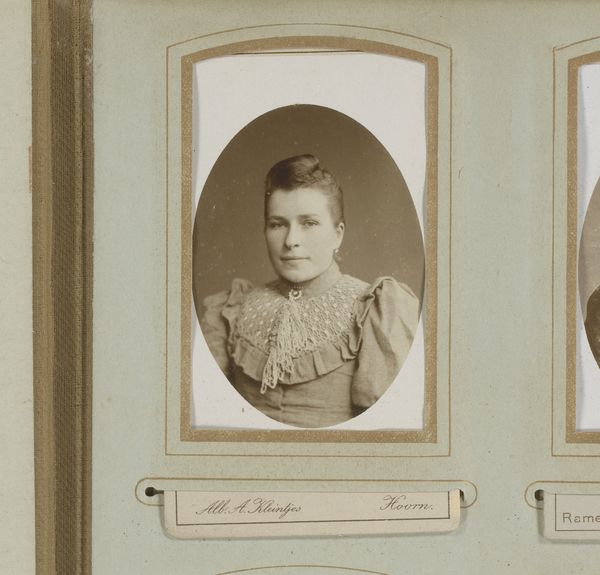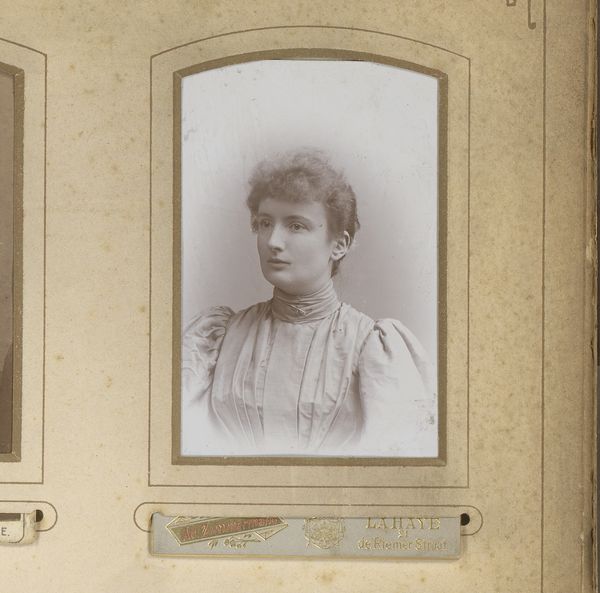 Albert Greiner made this portrait of a woman in an unspecified medium. The photograph presents a muted palette, dominated by creams, whites, and soft browns, lending it a delicate, almost ethereal quality. The woman is framed by an oval border, which isolates and elevates her image, while the soft focus and gentle lighting contribute to a serene and timeless atmosphere. The framing of the photograph is essential here, drawing the viewer’s eye directly to the sitter’s face and upper body. The neutral tones and composition also serve to abstract the subject somewhat. The absence of a specific background or setting shifts the focus from the external world to the internal essence of the individual. It invites us to consider the sitter not just as a person, but as a representation of an era and its ideals. It's an open question whether the artist intended to capture a likeness or to explore broader themes of identity. This photograph remains a site of ongoing interpretation and re-interpretation.