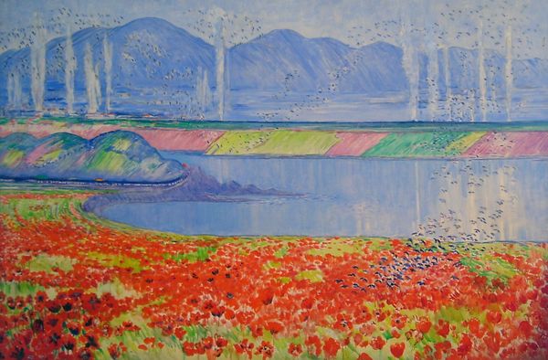 Sattar Bahlulzade made this large painting, called Gülüstan, and it’s filled with flowers and birds. It seems like a dream or a memory, a world seen through the eyes of someone deeply connected to nature. The way Bahlulzade applies paint is really interesting; it's not about hiding the process, it's about making the painting a record of his movements, his touch. The colors, mostly blues and greens with touches of white, create a hazy, almost ethereal atmosphere. If you look closely, you can see the individual marks that make up the flowers and birds, each one a small gesture of love and attention. The birds, especially, seem to float on top of the flowers, giving the whole painting a sense of movement and life. This feeling reminds me of Milton Avery's landscapes and the way he's able to use color and form to create a mood, a feeling of being in a certain place. Bahlulzade gives us a place that feels both real and imagined, like a perfect memory. Ultimately, Bahlulzade reminds us that art is as much about feeling as it is about seeing.