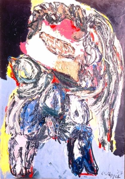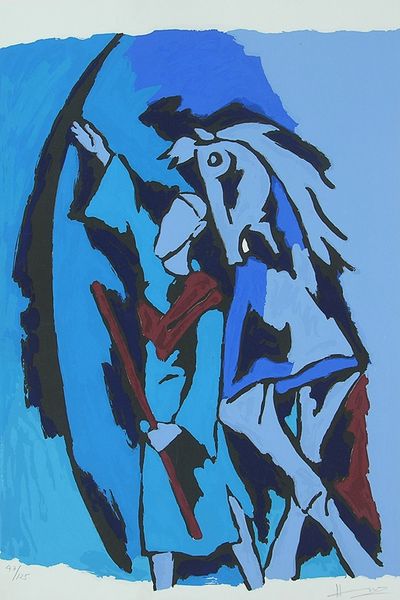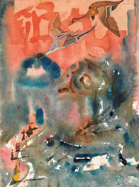 Curator: Looking at this canvas by Ligia Macovei, titled "Untitled", one immediately notices its profound expressiveness. Editor: It hits you hard, doesn't it? The composition feels both chaotic and intensely focused. The predominantly blue and mauve palette amplifies a feeling of cold grief, I'd say. Curator: Yes, and within that carefully considered chaos, there is a potent arrangement of symbolic figures. Notice the individual with their face obscured by their hands—a universal symbol of anguish, reflecting collective sorrow. Editor: Structurally, that obscured face acts as a visual anchor, doesn't it? The eye keeps returning to it, even amidst the dynamic brushstrokes and blurring of forms achieved through acrylic and ink on canvas. There is also the matter of that cross hovering behind the composition. Curator: The cross is, of course, steeped in centuries of religious iconography, here perhaps to offer a clear nod to the deposition scene while adding depth and layering a narrative of suffering and redemption. The figures clinging to what could be the body elicit something ancestral, primal and poignant within. Editor: The blending of acrylic and ink is interesting. The way that those washes create overlapping textures, while giving depth to an otherwise relatively flattened space reminds me a bit of Rothko’s color field paintings or even de Kooning. Did Macovei seek to build her visual vocabulary upon such historical movements? Curator: Certainly, an informed interpretation could posit such associations. These art historical parallels invite discussions about shared existential anxieties. The human figure here dissolves in and out of symbolic planes – the universal expressed through gesture. Editor: The looseness and evident brushstrokes seem crucial in achieving its raw emotional power. Had the rendering been precise, illustrative even, I believe that this work might lose its appeal. As it stands, “Untitled” manages to evoke sadness as form and color conjoin to do so. Curator: Absolutely, and seeing this piece helps me consider the enduring nature of grief and the ways cultures articulate that sentiment through images across time. Editor: Indeed, for me, it becomes a masterclass on the power of suggestion and the beautiful brutality of emotive abstraction.