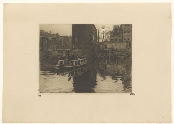 This tiny etching, Gezicht op de Kraansluis in Amsterdam, was made by Willem Witsen, and look at the way the ink just barely clings to the paper! It’s like he’s trying to catch a memory, a fleeting glimpse of the city. The physical quality of the print, that slight texture, makes it feel almost ghostly, like something seen through a fogged-up window. See that little shack on the water's edge? It's just a tangle of lines, but it feels so solid, so real. I love how Witsen doesn't try to smooth things out or make them perfect. This reminds me a lot of Whistler. Both artists were interested in capturing the atmosphere of a place, the feeling of being there, rather than just a literal depiction. It's that tension between clarity and ambiguity that makes it so compelling!