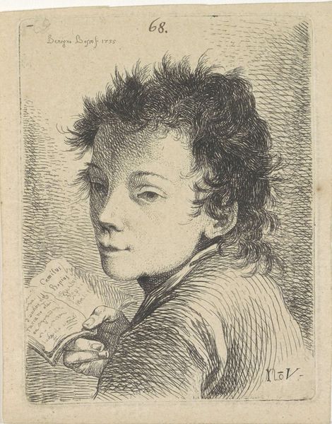 Joannes Bemme made this print of Dirk Langendijk as a child in the Netherlands. The image offers insight into Dutch society and its artistic conventions. Looking at the image, we see the conventions of portraiture, particularly the emphasis on capturing the likeness of the sitter, yet within the restricted codes available to the printmaker. The portrait is an assertion of social status, reflecting the economic structures that supported artistic production at this time. Note how it presents the sitter as youthful but somber, perhaps revealing the values instilled from childhood. It is hard not to wonder about the public role of such an image. Was it simply a memento for private consumption or was it part of a wider set of social rituals? To understand the image fully, we can consult period sources such as archival records to reveal the social conditions that shaped its production, thinking of the image as a commentary on the structures of its time. The meaning of this portrait, like any artwork, is contingent on its social and institutional context.
