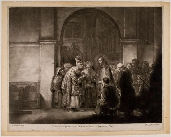 Curator: This is "The Little Vauxhall," by Pierre Alexandre Wille, created sometime in the late 18th century. Editor: It's immediately striking—the energy conveyed through the figures, the contrasts in light and shadow. There's a palpable sense of theatricality. Curator: Absolutely, and to understand that theatricality, we must consider Vauxhall Gardens itself—a space for public amusement, but also a stage where social roles were performed, and class distinctions were both reinforced and subverted. Editor: Note how the artist uses etching to create a rich tonal range. The composition leads the eye from the frenetic activity on the left to the almost grotesque figures in the shadows. Curator: The etching captures the social dynamics of the era, the shifting power, and the commodification of leisure—all set against the backdrop of revolution. Editor: It seems to reflect anxieties of the time. Fascinating how form and context intertwine. Curator: Indeed, offering us a glimpse into the complexities of 18th-century society and its evolving visual culture.