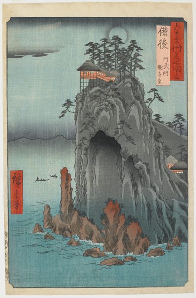 Editor: We're looking at "Gokanosho Village in Higo Province," a woodblock print, possibly from 1856, by Utagawa Hiroshige. I’m really drawn to the contrast between the vast landscape and the small figure traversing the bridge; it feels almost like a comment on humanity's place within nature. How do you interpret this work? Curator: It’s interesting that you’re immediately drawn to the scale. This was produced in a time of significant political and social tension in Japan, as the Tokugawa shogunate faced internal struggles and external pressures to open the country to the West. Ukiyo-e prints, while seemingly depicting idyllic scenes, were also a form of social commentary. Consider that lone figure on the bridge. Does it suggest something about isolation, resilience, or perhaps even resistance in the face of larger societal forces? What kind of journeys were people making during this period? Editor: That’s a fascinating perspective. I hadn't considered the possibility of a political undertone, given the tranquil feel. I guess the journey of that individual could be interpreted in many ways— escape, exploration, or even forced relocation, given the instability of the era. Curator: Precisely. Landscape prints weren't simply records of beautiful places. They also subtly encoded the socio-political climate of the time. Look at the way Hiroshige frames the village within this imposing landscape. It's not just pretty; it's about the power of place and the struggles played out within it. Is there anything about the style itself, or the medium of the print, that resonates with you from this point of view? Editor: I think that understanding this print within its historical context adds so many layers to my appreciation. I'm now much more aware of how landscape art, in general, can reflect power structures and narratives of resistance. Curator: Absolutely. Art is never created in a vacuum. Exploring the relationship between artistic expression, social upheaval and politics adds invaluable layers to any work.