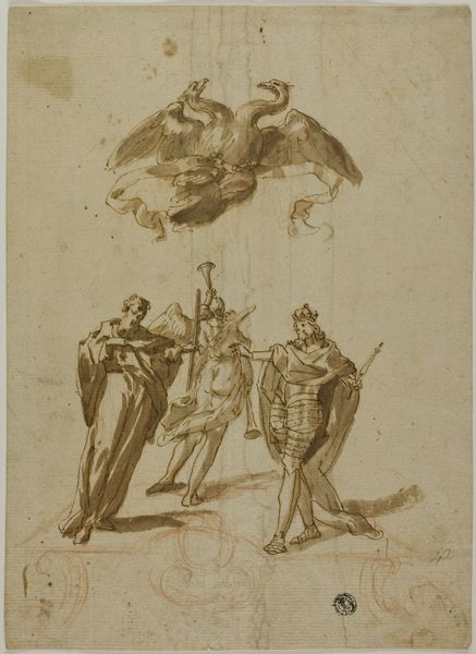 Curator: Standing before us is a "Study Sheet with Four Soldiers' Heads," dating back to sometime between 1760 and 1770, a pencil drawing by François Boucher held in the Rijksmuseum. Editor: My first thought? A rehearsal of faces. Stern, solid, with that kind of weary intensity only soldiers seem to master. Almost feels like an exercise in stoicism, sketched in fleeting, honest strokes. Curator: Indeed! These aren't portraits in the typical sense; they're studies taken from the Column of Trajan. Boucher likely intended them for a plate in a collection of characters based on the column, etched by J.B. Hutin and published by Gabriel Huquier. It reflects that Rococo fascination with antiquity, refracted through a somewhat theatrical lens. Editor: Ah, Trajan's Column. So much embedded history! I see that ancient Roman symbol, the soldier's helmet, which is not only practical headgear but also screams authority and duty. Then there's the way the faces are turned - each one seems lost in thought, suggesting battles fought both outwardly and inwardly. Are these the faces of conquerors or of men just trying to survive? Curator: It’s a delicate balancing act. Boucher teases out the romantic ideal of the soldier, steeped in the grandeur of Roman history. However, the fleeting lines, the sketch-like quality, introduce a vulnerability – a sense of the individual caught within the machine of empire. You almost get a sense of humanity slipping through the monumental facade. Editor: Exactly! The pencilwork is loose enough that we sense the artist's own hand, his own breath on the page. It’s almost like he’s whispering secrets about the cost of war through these replicated Roman profiles. There's a deep empathy at work, it feels like. It's so striking how such simplicity – just pencil on paper – can transmit such complex emotion. Curator: And think about that choice of copying, rather than creating anew. He’s tapping into a very specific lineage, but doing so through the lens of his own era, his own sensibility. What an odd act of translation – and interpretation – through line. Editor: It really prompts reflection. Are we truly distinct from those figures carved in stone so long ago? Maybe these aren't just Roman soldiers, but echoes of ourselves, caught in similar struggles, still trying to decipher what it means to bear arms. Curator: Absolutely. Boucher’s soldiers are echoes rippling through time, reminding us that the weight of history, like the burden of war, is always carried by the individual face.