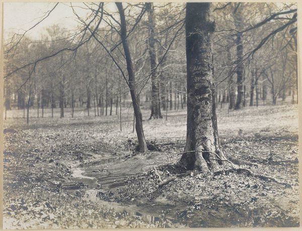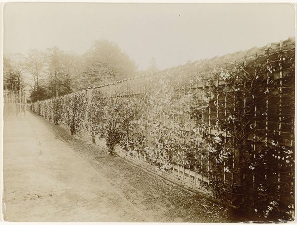 Richard Tepe made this silver gelatin print of a wall with a blooming peach tree at 'De Poll' house in Voorst, sometime between 1864 and 1952. The cool sepia tones feel almost brittle, a kind of visual frost. Look how Tepe's captured the lattice against the brick. It's like a delicate drawing laid over the solid structure, creating a rhythmic pattern that your eye just wants to follow. And those bare trees in the background? They echo the linear structure in the foreground, blurring the boundary between what’s natural and what’s constructed. There’s something so melancholic and beautiful about this image, and something interesting too about how a photograph of nature can also seem so staged. Think of Karl Blossfeldt's stark, close-up plant portraits, where nature becomes almost architectural. Tepe, like Blossfeldt, invites us to see the world not just as it is, but as a series of forms, lines, and textures, all talking to each other.