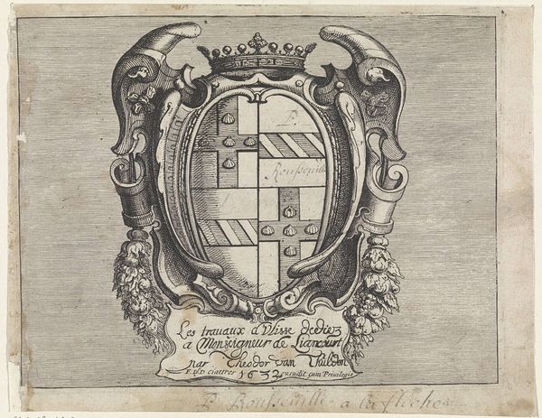 Editor: We're looking at a vignette by Marcus Tuscher from 1755, made with engraving. It's called "Vignet til Frederik Lodvig Norden, 'Voyage d'Egypte et de Nubie'," created for a book. It’s packed with classical imagery… it almost feels like an ancient coin. What jumps out at you when you look at it? Curator: It *does* have that coin-like quality, doesn't it? But for me, it whispers stories of Egyptomania, the craze that swept Europe in the 18th century after Norden's travels. The woman in the center, she's a personification of Egypt, serene and fertile. Editor: A personification, that's a fancy way of saying…? Curator: Ah, think of it as Egypt in human form! She embodies the land's perceived qualities. And around her, little cameos featuring Ptolemaic rulers like framing the scene. These are throwbacks, fantasies even. What kind of feeling do you get from those? Editor: They feel almost… superimposed? Like pieces of different worlds mashed together. The landscapes are super-busy. Curator: Precisely! That tension, that dreamlike jumble, captures how Europeans saw Egypt: both familiar and utterly strange. Do you feel the difference? Editor: Yeah, definitely. Like they're trying to fit this ancient, complex world into a neat, understandable box. It makes me think about how we perceive other cultures, even today. Curator: It is an amazing mirror. It still asks important questions of the viewer in our contemporary society. A reminder that “understanding” is always a work in progress, always shifting like sands. Editor: I'll definitely look at travel illustrations differently now. This feels more like a projection of European ideas than a straightforward record. Curator: Wonderful. Seeing it like this allows us to understand ourselves better, and isn’t this is where all genuine art exploration should ultimately take us?