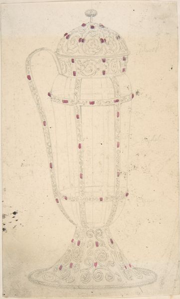 Editor: This is a pencil drawing from about 1936 by Fanchon Larzelere titled "Waistcoat." The waistcoat itself is almost invisible, just implied, but the embroidery is depicted with incredible detail. What significance might lie hidden in this almost obsessive focus on ornamentation? Curator: Indeed. Observe how the waistcoat itself acts as a blank slate, a form almost absent. The detailed embroidery becomes the primary storyteller. We see recurring floral motifs intertwined with geometric patterns. Such blending could signify the wearer's connection to both nature and societal structure. It asks, doesn't it: how does personal identity become intertwined, almost coded, through visual symbols on clothing? Editor: That's fascinating, like the garment becomes a language. Were these common motifs at the time? Curator: Precisely. The floral motifs were, and continue to be, associated with femininity, domesticity, but also ephemerality and beauty. The geometric aspects introduce concepts of order and status. Taken together, they paint a portrait, not just of an article of clothing, but of the era's ideals and constraints upon its wearers. Do you see, now, how the “Waistcoat” embodies cultural memory? Editor: Absolutely. I hadn't considered how the piece operates beyond its surface. I now understand how it mirrors personal stories through inherited visual culture. Thank you. Curator: And thank you, for guiding us toward unraveling these layered symbols within such a seemingly simple drawing. The silence in the absent spaces speaks, does it not, just as profoundly as the depicted detail?