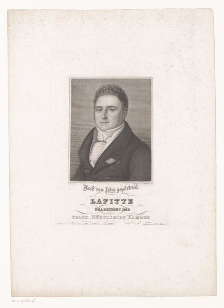 This engraving, a "Portret van Jacques Laffitte" made by Ferdinand Bahmann, presents us with a man whose attire is laden with symbols of power. His neatly tied cravat and the cut of his jacket speak to his status, a visual language understood by his contemporaries. The arrangement of his clothing brings to mind similar displays of status that reemerge throughout history. Consider the ruffs of the Elizabethan era, or even the tailored suits of the modern businessman. These are not merely garments, but rather symbolic armor, shielding the wearer while projecting authority. Such symbols evolve, yet their psychological effect remains potent. The need to signal one's position, to assert dominance or belonging, seems woven into the very fabric of our collective consciousness. The portrait resonates with a deep human desire to leave one's mark, a desire that cycles through history, constantly re-emerging in different forms.