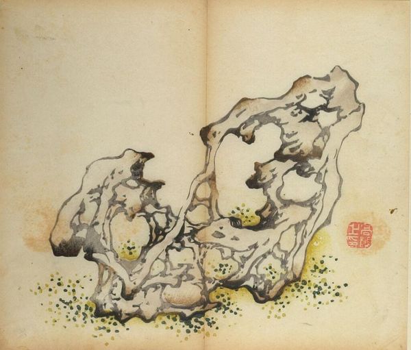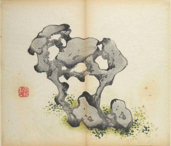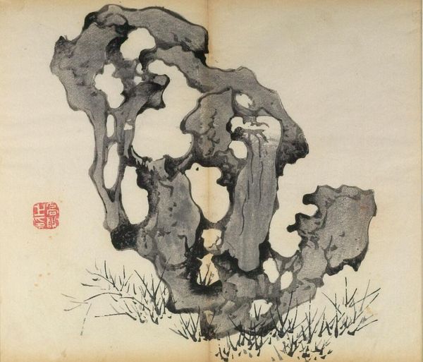 Curator: The Harvard Art Museums hold this illustration from the Ten Bamboo Studio Manual of Calligraphy and Painting, titled “Plum Blossoms and Rock,” created by Hu Zhengyan, who lived from 1584 to 1634. Editor: It's a rather lovely composition! The stark contrast between the angular rock and delicate blossoms creates a very intriguing tension. Curator: Indeed. The Ten Bamboo Studio Manual played a pivotal role in disseminating artistic styles and techniques, profoundly influencing the artistic landscape of its time. Editor: Observe how the artist uses negative space to define form; the branches and rock almost seem to emerge from the paper itself. Curator: The woodblock printing popularized in manuals like this one democratized access to art and artistic knowledge. Editor: Ultimately, the arrangement of line, shape and texture in this print provides a pathway into the rich visual culture of the late Ming dynasty. Curator: Seeing it within the context of artistic knowledge sharing, we gain a richer appreciation for its historical role. Editor: Absolutely, and considering the visual interplay, we see just how meticulously crafted each element of this work is.
