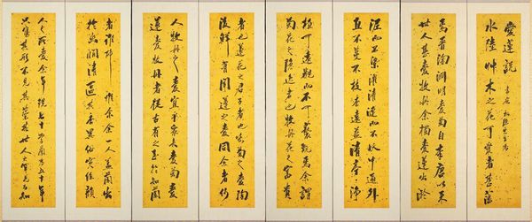 Wu Xizai created these four hanging scrolls in the 19th century using ink on paper. While seemingly traditional materials, the ink itself offers a deeper insight. Think about how the ink was manufactured. This wasn't a simple process; it involved grinding and mixing, the addition of binding agents, and aging. The quality of the ink, its texture and depth of color, was directly linked to the labour invested in its making. The artist's hand is crucial, but so is the unseen work. The act of calligraphy itself also speaks volumes. It's a process of disciplined execution, each stroke deliberate and imbued with meaning. The characters are not merely written; they are built, one element at a time. And in their execution, we sense the weight of a cultural tradition, a lineage of skilled practitioners stretching back centuries. When we view these scrolls, consider the materials and processes. By doing so, we recognize the broader social context, and the value that is placed on this work.