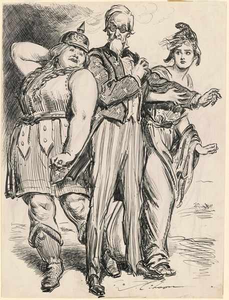 Fritz Boehle created this drawing, "Return from the Field", using pen and ink. Boehle, living through the late 19th and early 20th centuries, witnessed significant socio-economic shifts, including the rise of industrialization and changing agricultural practices. In this drawing Boehle captures a group returning from work, perhaps singing, or at least calling out. The juxtaposition of labor, suggested by the scythe and sickle, and implied leisure speaks to the period's complex relationship with work. Notably, the inclusion of both male and female figures challenges traditional gender roles within agricultural settings, and the differing attire may indicate varying social classes or roles within the community. Boehle’s attention to their expressions invites contemplation on their experiences and emotional states, as well as the relationship between labor, identity, and community. This artwork then, provides a glimpse into the lives of ordinary people during a period of profound change, offering insights into the social dynamics of the era.