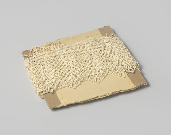 Gustav Schnitzler created this unusual artwork, "Golvend gerimpeld rose lint op karton", with ribbon on cardboard, but we don't know exactly when. At first glance, it looks like a minimalist painting, but then you notice it's all in relief, made with these tiny, rippled ribbons. The surface is built up with this obsessive, repetitive mark-making. There's something so tender and weirdly compelling about that repetitive gesture. The pale pink and faded blue color palette gives it a kind of melancholic feel. I can imagine Schnitzler carefully placing each ribbon, one by one, creating this undulating texture. There's a real physicality to it; you can almost feel the artist's hand at work, pleating, ruffling, layering. It reminds me a bit of Yayoi Kusama's infinity nets, but with a softer, more delicate touch. It's both a painting and a sculpture, a testament to the beauty of simple materials and repetitive actions. Ultimately, I think it asks us to reconsider what a painting can be.