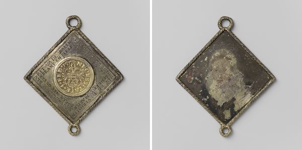 This is a silver medal of the Skippers Guild in 's-Hertogenbosch, created by an anonymous artist. At its heart is an emblem laden with cultural memory. One side depicts a sailing vessel, vital to the guild's identity and prosperity. The other features symbolic figures flanking a coat of arms; the figures hold objects that resemble spears. These figures echo ancient Greco-Roman depictions of idealized strength and protection, which we find reappearing in triumphal arches, statues, and coins across centuries. The image of the ship itself is not merely a depiction of a vessel. It is a potent symbol of journey, risk, and the hope for safe return, deeply embedded in the human psyche. It evokes a sense of adventure and the unknown, a call to the sea that has resonated through time, from ancient myths to modern seafaring tales. This medal is not just an object; it is a vessel carrying centuries of cultural and emotional significance.