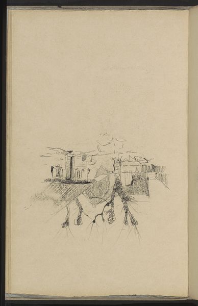 Curator: Willem Witsen created this pencil drawing, "Landschap met schapen," sometime between 1884 and 1887. It now resides here at the Rijksmuseum. Editor: It feels so fragile. Like a memory barely sketched on paper, threatening to fade if I look too directly at it. Curator: Witsen was working during a fascinating period in art history. Impressionism was taking hold, but realism still held sway. This piece reflects that tension, don't you think? Editor: Absolutely! You can see that struggle, that embrace of fleeting impressions. The 'sheep,' they’re more like puffs of cloud, and the landscape itself, an echo. Is it realism’s hold on him that keeps these elements tethered to our world? Or are these ghostly apparitions from another? Curator: It's interesting that you say ghostly, because the social and political context of this piece are so tied up in the artistic milieu of late 19th-century Netherlands. Artists were breaking from the establishment, searching for ways to represent modern life outside academic restrictions. It reminds us that art is born from conflict. Editor: Which makes it all the more beautiful. All of these faint suggestions make me feel wistful, contemplative even. There's so little detail, yet it evokes such a strong emotion. It is just a humble drawing, but is that just because it lacks pomp and fanfare? I could linger here. Curator: It’s tempting to interpret those ‘sheep’ as some kind of metaphor, the innocent lost in modernity or a commentary on society itself. We want our artists to mean something, don’t we? It is powerful stuff! Editor: Agreed! Whether commentary or intimate, I feel a genuine presence emanating from this. I think the real sheep are the people who don't see what he's captured here. Curator: It has been truly insightful considering Willem Witsen's "Landscape with Sheep". It’s proof that even the humblest medium, a simple pencil sketch, can open vast landscapes of meaning. Editor: Yes, and I am eager to remember this particular moment here too, thinking and reflecting within it's simple lines, a faint echo to call me back.