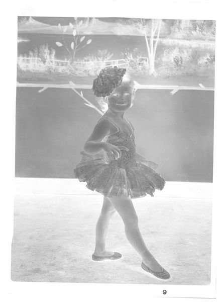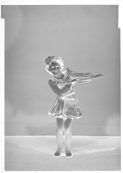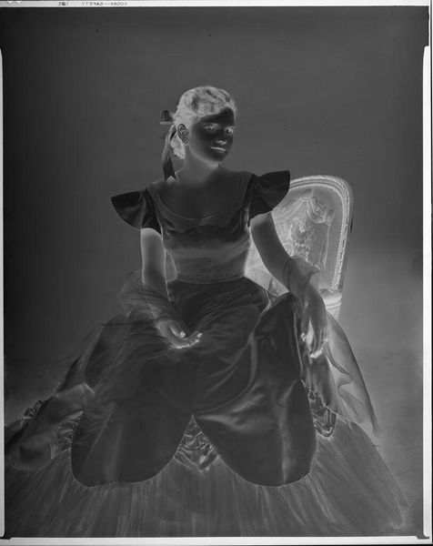 Curator: This is an intriguing untitled photograph by Lucian and Mary Brown, currently held in the Harvard Art Museums collection. It depicts a girl in a tulle dress. Editor: It’s unsettling. The negative exposure gives her a ghostly quality, emphasizing the artifice of her pose and dress. Curator: The composition centers around the contrast between the girl's rigid posture and the soft, flowing texture of the tulle. Consider the stark lines against the ethereal fabric. Editor: Right, and isn't the chair a symbol of domestic constraint? Perhaps the image critiques the performance of girlhood in a bygone era? The stiff collar looks like a cage. Curator: The interplay between form and texture is really where the image's interest lies, I think. Editor: I see your point, though for me the social commentary is what resonates most strongly. Food for thought, indeed!